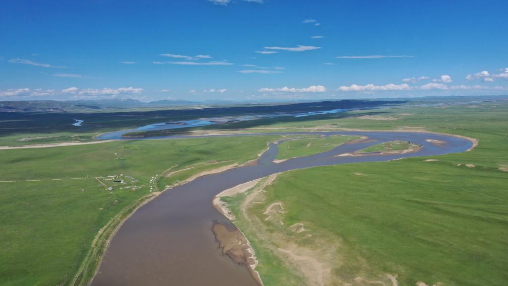 7月13日拍摄的玛曲草原景色(无人机照片 新华社记者陈斌 摄)