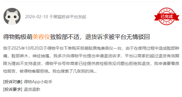 近期,黑猫投诉平台上部分对家用美容仪的投诉。