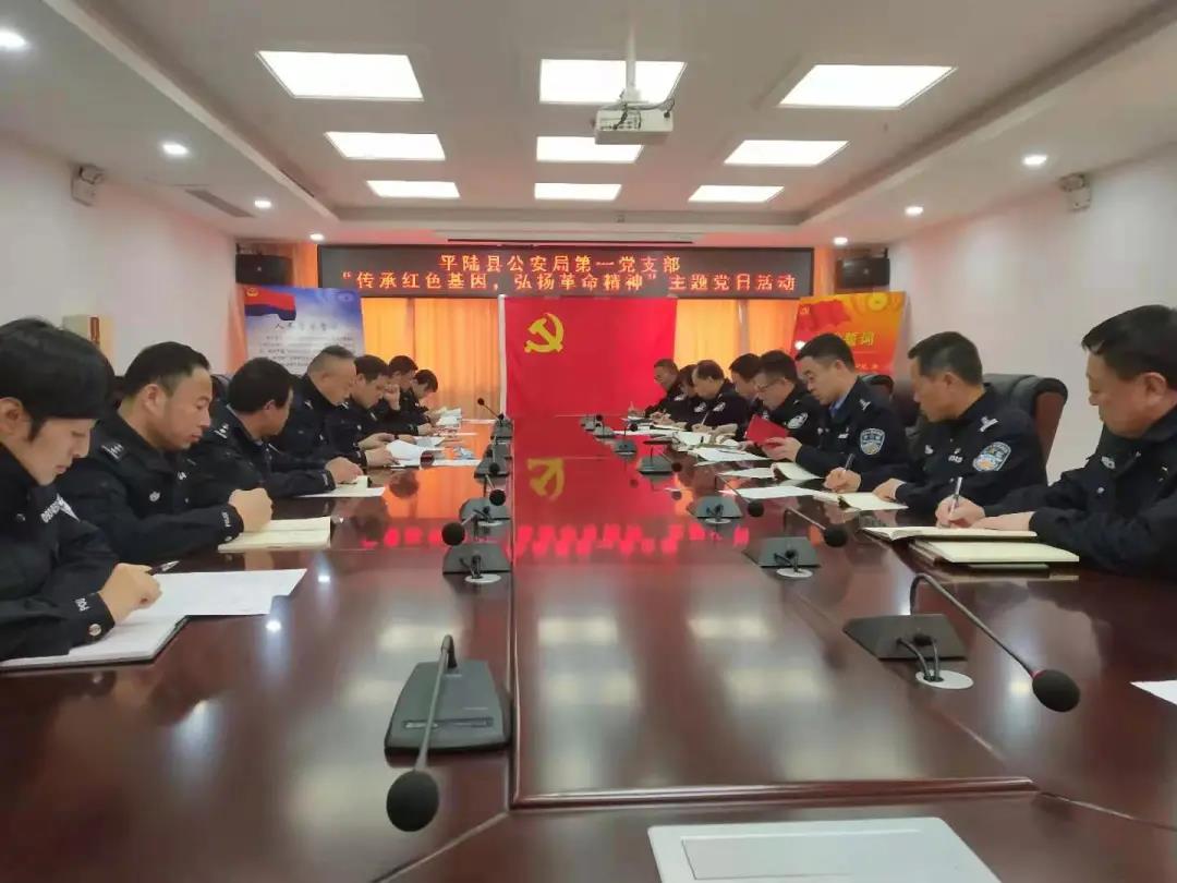 本网讯 4月6日,平陆县公安局第一党支部开展“传承红色基因,弘扬革命精神”主题党日活动,机关党委委员、第一党支部书记卫永真主持,全体党员参加了活动。县政府党组成员、公安局党委书记郭晓军同志以普通党员身份参加活动。