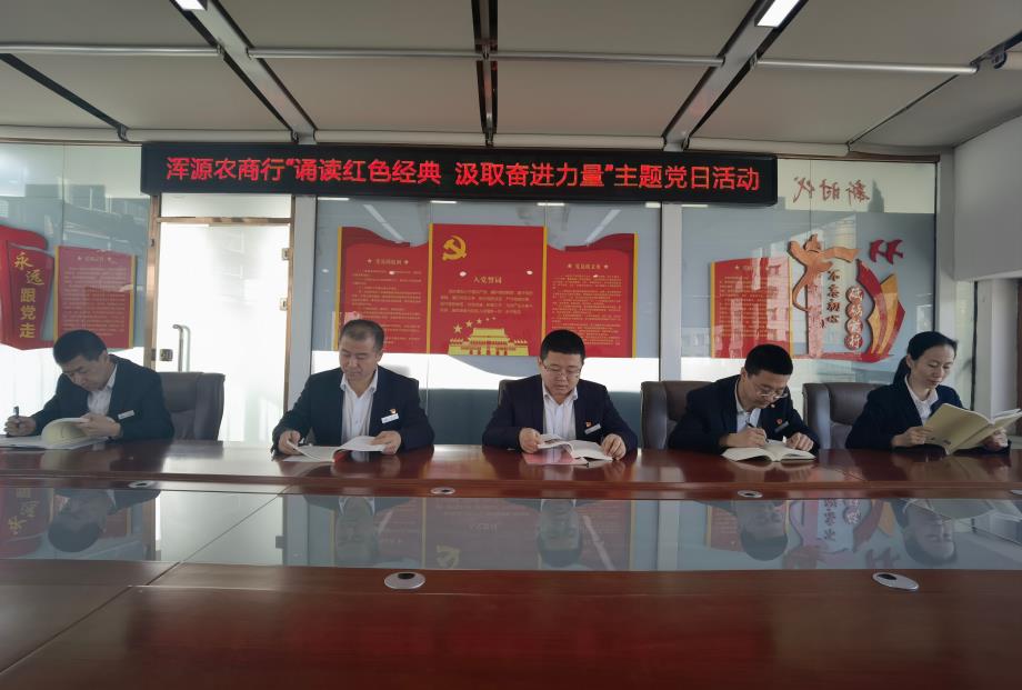 每名党员诵读一篇红色经典故事,分享自己阅读后的心得体会,一个个经典的红色故事,讲述着一件件中华儿女的英雄事迹和共产党人的革命情怀。在诵读和心得体会分享过程中,党员们充分感受到先辈们无私奉献、精忠报国的革命品质和舍小家为大家的高尚情怀,厚植红色信仰力量,牢记初心使命。同时让全体党员干部员工从党的光辉历程中汲取磅礴力量,更加坚定了全员坚守初心、勇担使命、攻坚克难、砥砺奋进的信心和决心。大家纷纷表示,将以更加良好的精神状态和更饱满的工作热情全身心投入到二季度各项工作中,在全面落实增存稳存、信贷投放、不良清收等任务方面持续发力。