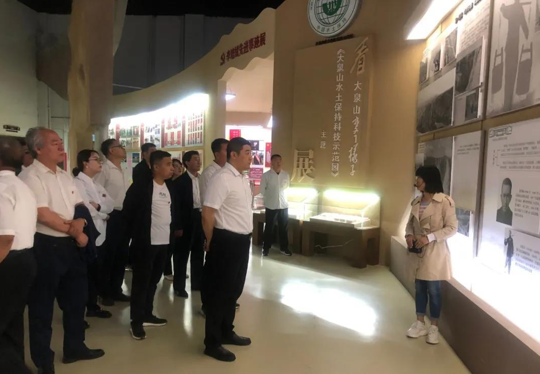 在纪念馆大厅内,全体党员重温毛泽东同志“看,大泉山变了样子”的重要批示,聆听讲解员讲解。上世纪50年代,大泉山人面对恶劣的自然条件,自力更生,艰苦奋斗,探索创造出了保持水土、绿化荒山的有效方法。1955年,毛泽东主席亲笔批示“看,大泉山变了样子”,大泉山由此成为闻名全国的水土保持先进典型。多年来,在几代人的不懈努力下,连续实施的大泉山绿化,硬是把黄秃秃的荒山沟,变成了绿树成荫的花果山。如今的大泉山已建成集生态示范、科普展示、人文教育于一体的红色生态旅游、国家级爱国主义教育、廉政文化教育基地。
