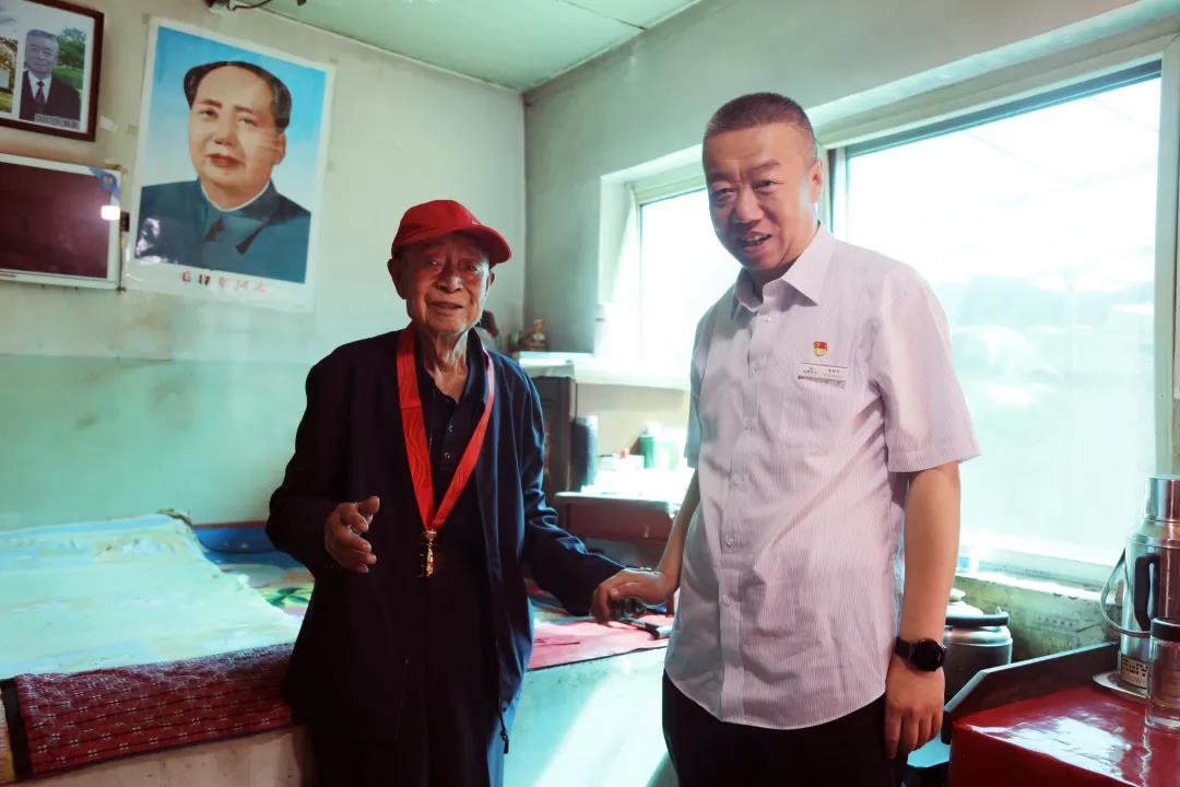 随后,李智升书记一行来到92岁高龄的困难党员,同时也是“光荣在党50年”奖章获得者靳开家中,与老人促膝交谈,关切询问老人的生活和身体健康状况,认真倾听老人讲述亲身经历,向老人几十年如一日的付出与坚守致以崇高的敬意,并叮嘱驻村工作队一定要关心照顾好困难老党员,多多关注老党员的身体健康状况,及时帮助解决就医和生活方面的实际困难,让他们老有所养、老有所医,切实感受到党的关怀和温暖。