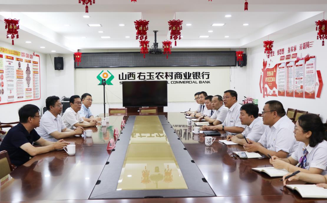 调研座谈会上,右玉农商银行党委书记、董事长于永久关于我行整体经营管理、货币政策落实、普惠金融建设、企业文化建设以及各项任务指标完成等情况作了详细汇报,卫文江行长充分肯定了我行各项业务取得的成绩,并对我行在支农支小信贷投放及各项货币政策落实推动工作中的成效表示赞赏。
