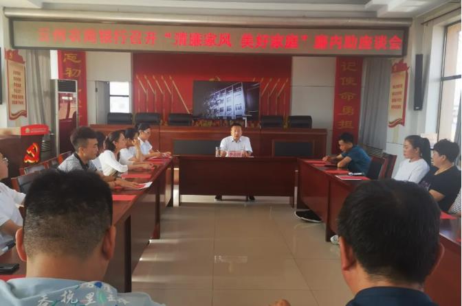 本网讯(周晋平)为严格落实省联社、大同审计中心党风廉政建设和反腐败工作要求,提升廉洁文化内涵,提高干部员工拒腐防变责任意识,切实发挥亲情监督助廉作用。7月7日,云州农商行组织开展了“清廉家风 美好家庭”廉内助座谈会,该行职工家属代表共20余人参加了此次座谈会。