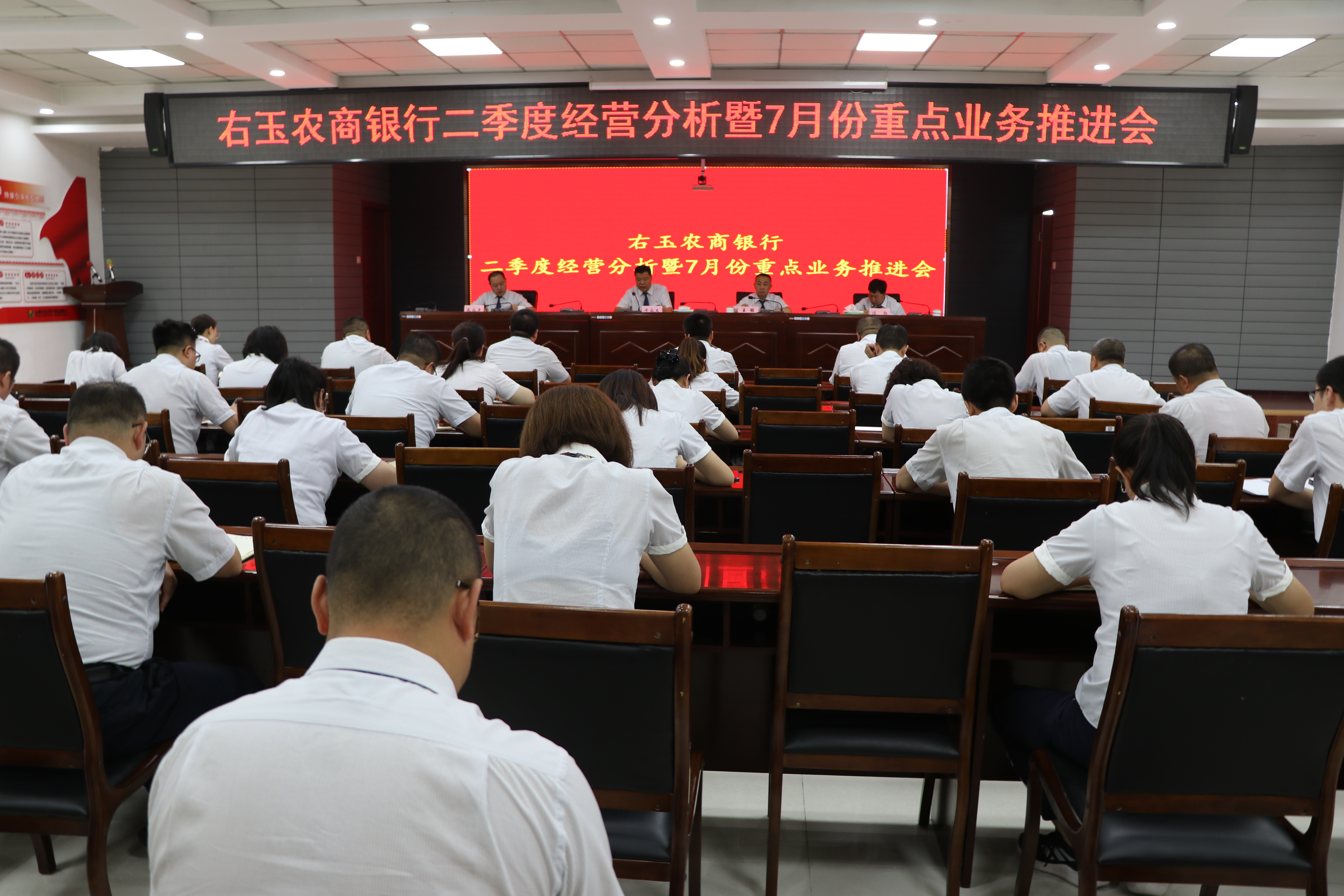为深入贯彻落实省联社“一二三”工作思路,纵深推进“四大战役”,持续引深“三强一转”“肃毒正源”,全面开展重建重塑,紧抓朔州审计中心“八大工程”项目建设,7月13日,右玉农商银行召开二季度经营分析暨七月份重点业务推进会,总行党委班子成员、各部门、中心及支行负责人共计47人参加,会议由纪委书记、监事长王铭主持。