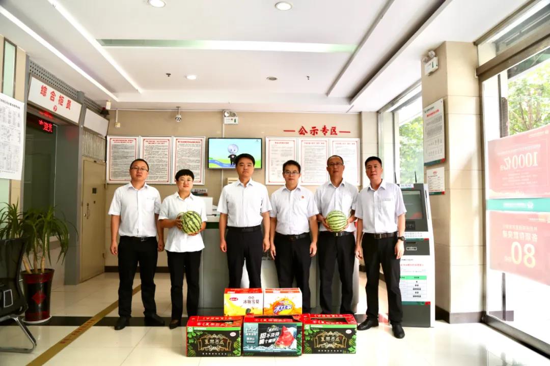 慰问活动中,闻喜农商银行党委班子成员带头深入基层,为员工们送去了西瓜、冰红茶、冰糖雪梨等降温物资,并向奋战在一线的员工表示深切的慰问,嘱咐员工夏季高温要注意防暑,以良好的精神状态和健康的体魄投入到工作中;在慰问活动中,要求各网点要做好安全隐患排查,确保安全生产;同时现场办公处理基层和员工反映的困难,能现场解决的予以现场解决,需要协调解决的摆上议事日程限时解决,切切实实为基层员工办实事、办好事、办成事。
