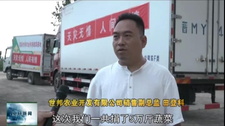 世邦农业开发有限公司是以种植供港有机蔬菜为主的企业,主要以种植广州菜心、芥兰、上海青、西兰花等作物,在河南灾情发生之后,企业负责人第一时间联系当地的救灾部门,了解到郑州中原区两个敬老院里留置的受灾群众需要蔬菜的情况后,立即筹备五万吨新鲜有机蔬菜运往郑州。