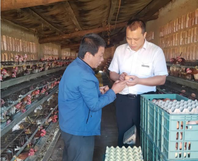 两人一边寒暄,一边进入鸡舍查看。交谈中杜晓强详细了解了节前鸡蛋价格和销量,并将自己此前在网络上和市场实地调查中了解的节前鸡蛋市场情况反馈给谢大哥作参考。谢大哥是多年的老贷户了。他2011年开始经营果园和蛋鸡饲养,效益挺好,信用也不错,陆续盖起了新房,两个孩子也先后考上了大学。2021年初,持续上涨的鸡饲料和低迷的蛋价重创禽蛋养殖,一度跌破盈亏平衡点。加上连续三年果价低迷,两个孩子上大学开支大,谢大哥的经济陷入困境。3月份贷款到期前夕,杜晓强在贷后回访中了解到情况后,主动向支行长汇报情况,针对谢大哥制定了一对一帮扶政策,承诺贷款归还后为其再次评定信用户,重新发放贷款帮扶鸡场渡过“艰难时期”。在杜晓强的努力下,谢大哥的鸡场扛过了市场低迷期,笑容重新回到这个朴实的中年汉子脸上。