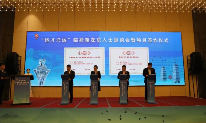 在项目签约环节,副县长范海英、马武康代表临猗县人民政府分别与中国农业科学院农产品加工研究所、北京市农林科学院植物营养与资源研究所、中国矿业大学(北京)大气环境管理与污染控制研究所、北京联合大学应用科技学院签订县校合作协议;与英投能源(北京)有限公司、北京天润新能投资有限公司、中核瑞德浩特(北京)科技有限公司、北京中建瑞特新材料股份有限公司、北京正隆斋全素食品有限公司、天津沽上真空玻璃制造有限公司分别签订风光储一体化示范项目、高效设施农业及500MW农光电互补发电项目、年产100万吨柔性防护材料生产基地及柔性材料研究院项目、年产5万吨水性涂料、10万吨无机堵漏新材料项目、农产品深加工项目、真空玻璃生产项目。