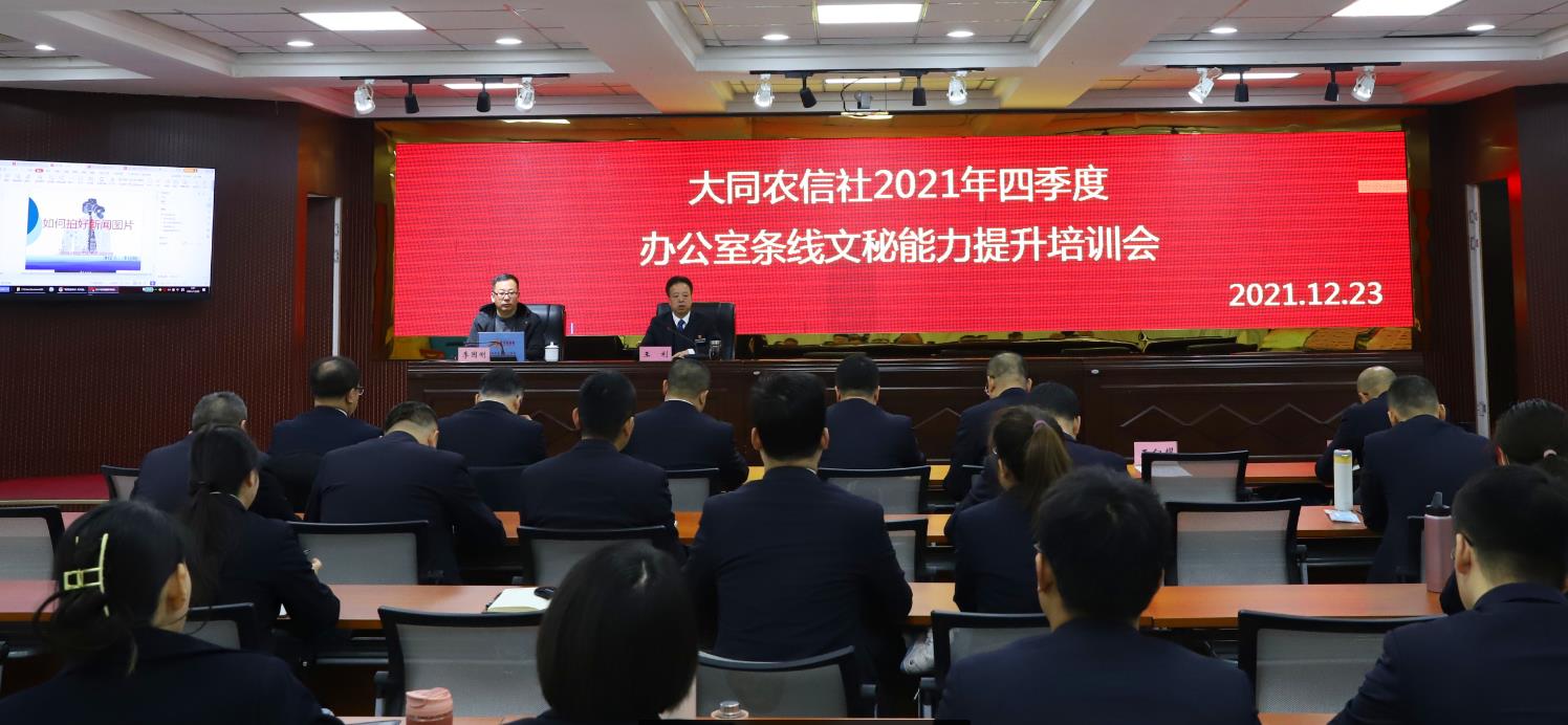 12月23日,大同审计中心成功举办全市农信社2021年四季度办公室条线文秘能力提升培训会,着力提高办公室条线人员公文写作应知应会及微信公众号运营能力,为全市农信社高质量发展提供好服务和保障。审计中心综合部全体人员,各行社办公室条线分管领导、办公室主任、公文写作人员、微信公众号运营人员共计30余人参加会议。会议由审计中心综合部主任王利主持。