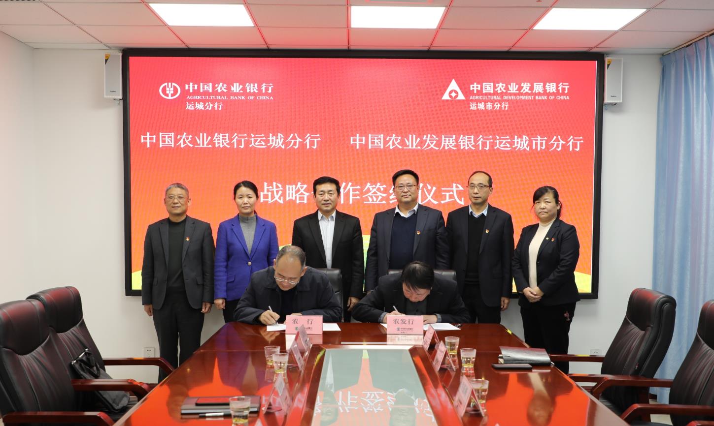 本网讯(通讯员赵亚楠 )为深入贯彻落实国家“十四五”规划,全力支持乡村振兴战略,2022年1月5日,中国农业发展银行运城市分行和中国农业银行股份有限公司运城分行签署《全面合作协议》。两个“农”字招牌的国有大行将本着“互惠互利、相互支持、协同合作、共同发展”的原则,强强联手,优势互补,资源共享,共同发力,精准对接乡村振兴金融需求,为运城市经济社会高质量发展贡献金融力量。