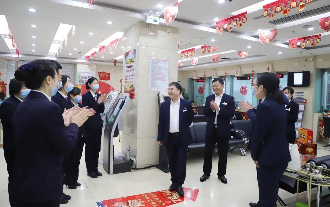 在总行营业部,杨振宁书记与坚守在岗位的一线员工亲切交谈,勉励大家坚定必胜信念、鼓足干劲、全身心地投入到新一年的工作中,砥砺奋进、精诚团结,掀起2022年“开门红”旺季营销活动的高潮。