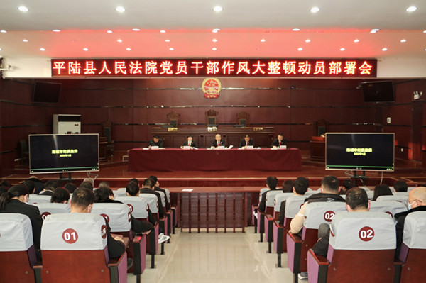 本网讯(通讯员 毛春芳)为认真贯彻落实市、县委决策部署,加强党员干部作风建设,切实打通狠抓落实的“最后一公里”,2月15日,平陆法院召开党员干部作风大整顿动员会,会议由党组成员、副院长贠丰彬主持,全院干警参加。