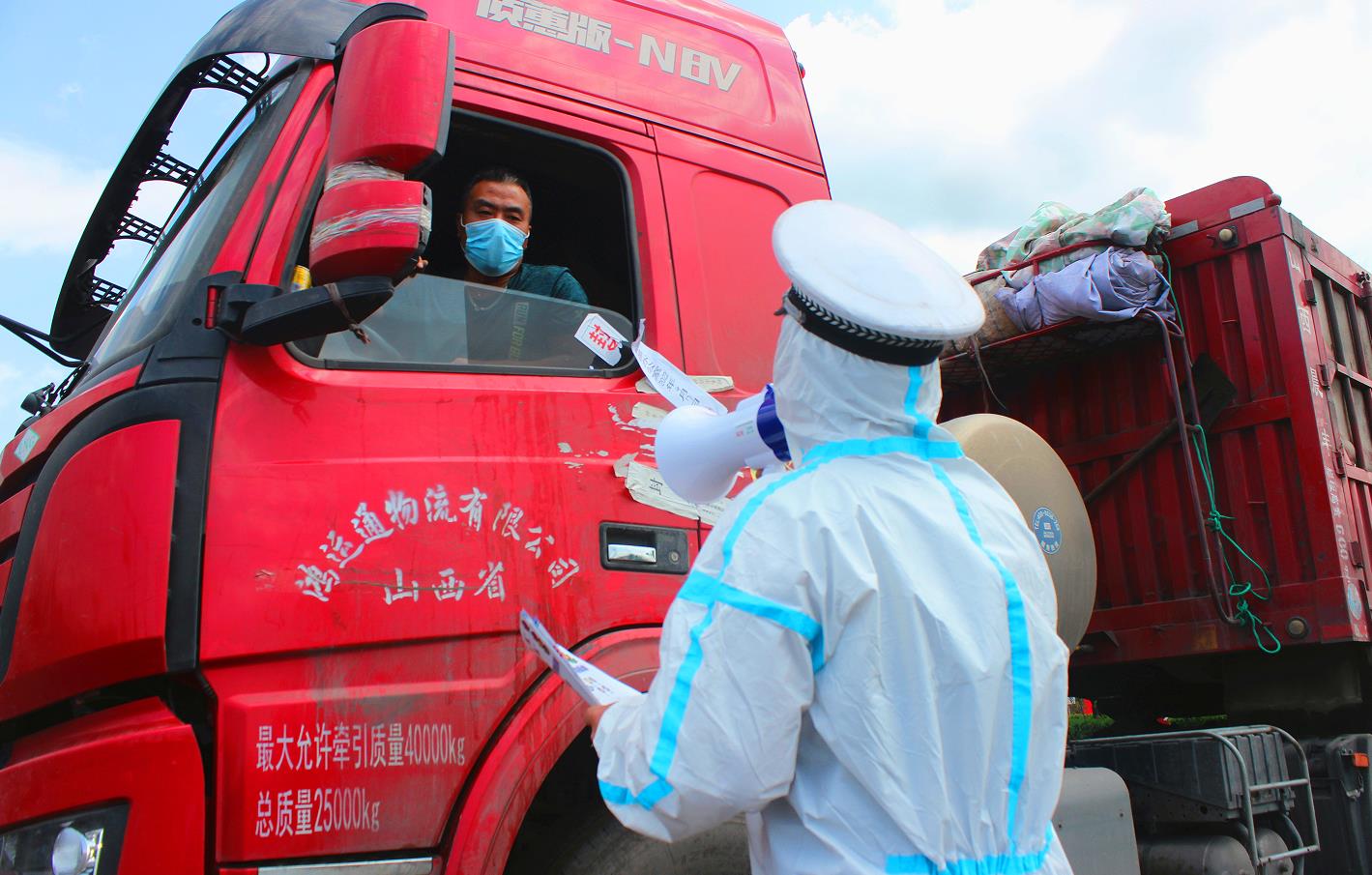 本网讯(特约观察员 李东兴)4月19日,在侯禹高速稷山出口处疫情防控检测点,一名大货车驾驶人向正在执勤的民警竖起大拇指,给予点赞。