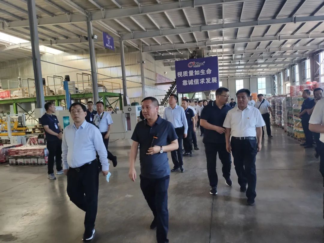 杨志忠一行深入中农化新项目厂区、生产车间、展厅等地参观。沿途听取了刘董事长对公司的发展历程、经营现状等方面的介绍,详细了解企业新项目厂区的建设情况及未来发展规划,对企业发展取得的成绩给予肯定,并对企业为农业发展作出的贡献表示赞扬。