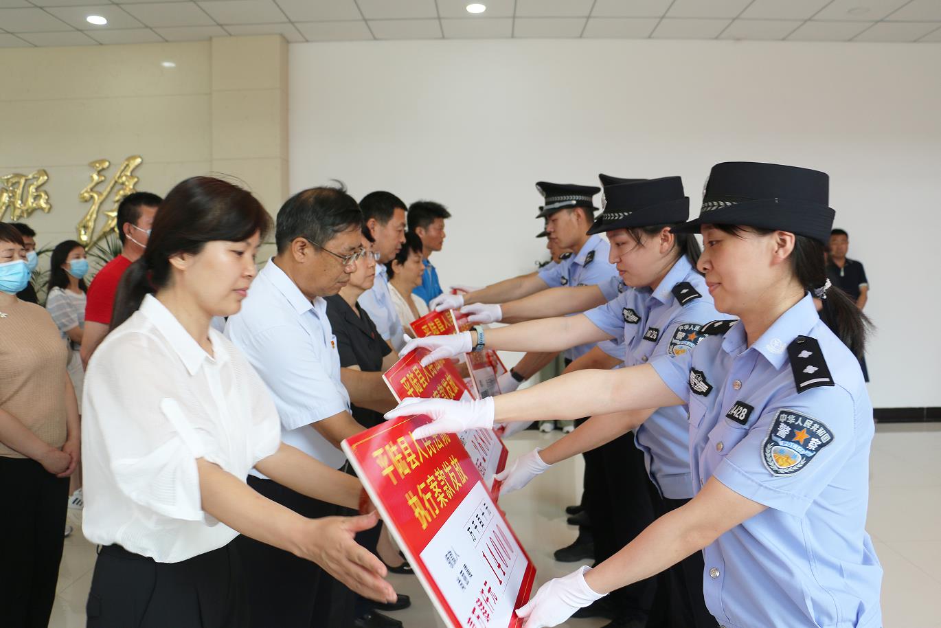 本网讯(通讯员 毛春芳)6月22日,根据山西高院统一安排部署,平陆法院同步开展了全省三级法院“三晋执行利剑”案款集中发放周活动。县委常委、政法委书记张海彦、党组书记、代院长程丽珍出席仪式,人大常委会副主任伊改莲、政协副主席杨文革、人大法工委主任荆慧婵、文化文史和学习委员会主任曹旭升受邀对本次活动见证监督。