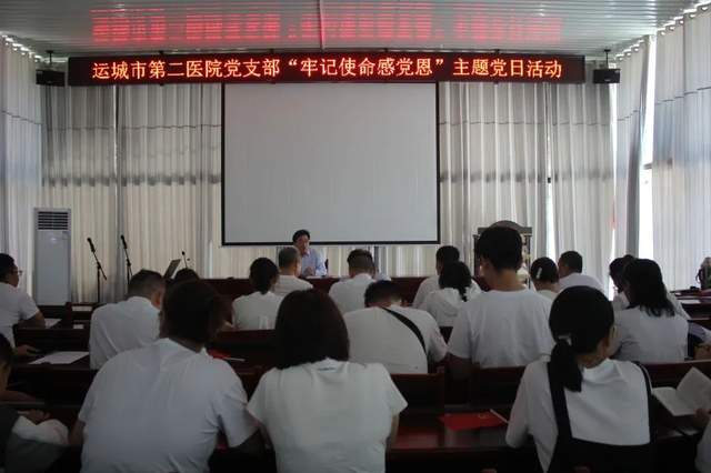 其次,在基地组织召开了运城市第二医院“牢记使命感党恩”主题党日活动。此次主题党日活动由党支部书记、院长张定琳同志主持。