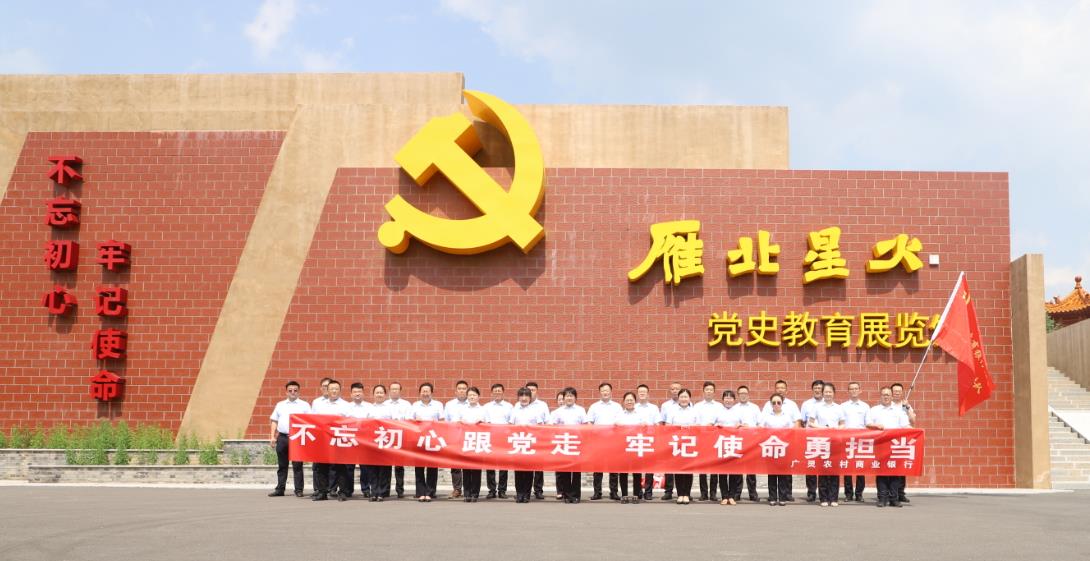 本网讯 (通讯员 赵多献 霍飞飞)为庆祝中国共产党成立101周年,迎接党的二十大胜利召开,7月8日下午,山西省广灵农商银行党委组织党员干部赴雁北地区第一个农村党小组成立地——广灵县榆沟村“雁北星火”党史教育展馆,开展“不忘初心跟党走,牢记使命勇担当”主题党日活动。
