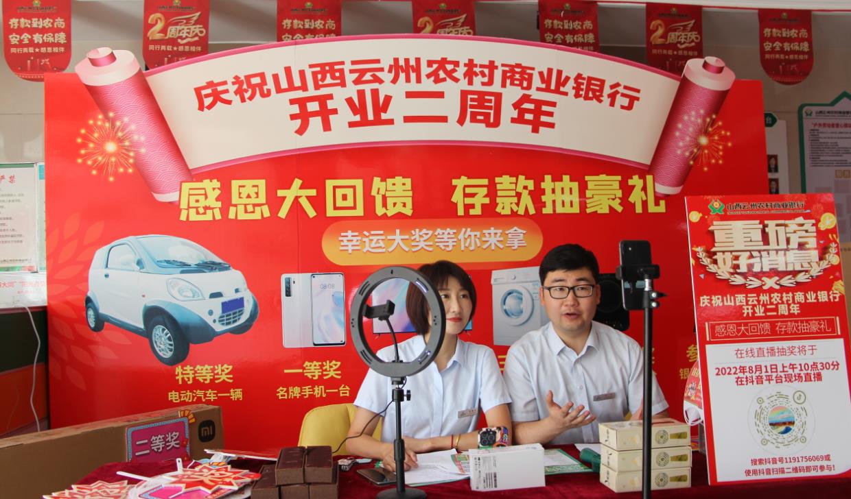 本网讯(通讯员 田野)2022年8月1日上午,云州农商银行组织开展成立两周年抽奖回馈活动。此次抽奖活动采取视频直播的形式进行,不仅降低了疫情传播的风险,更让观看直播的群众随时随地参与直播,实时互动,扩大了宣传面,贴近了老百姓。