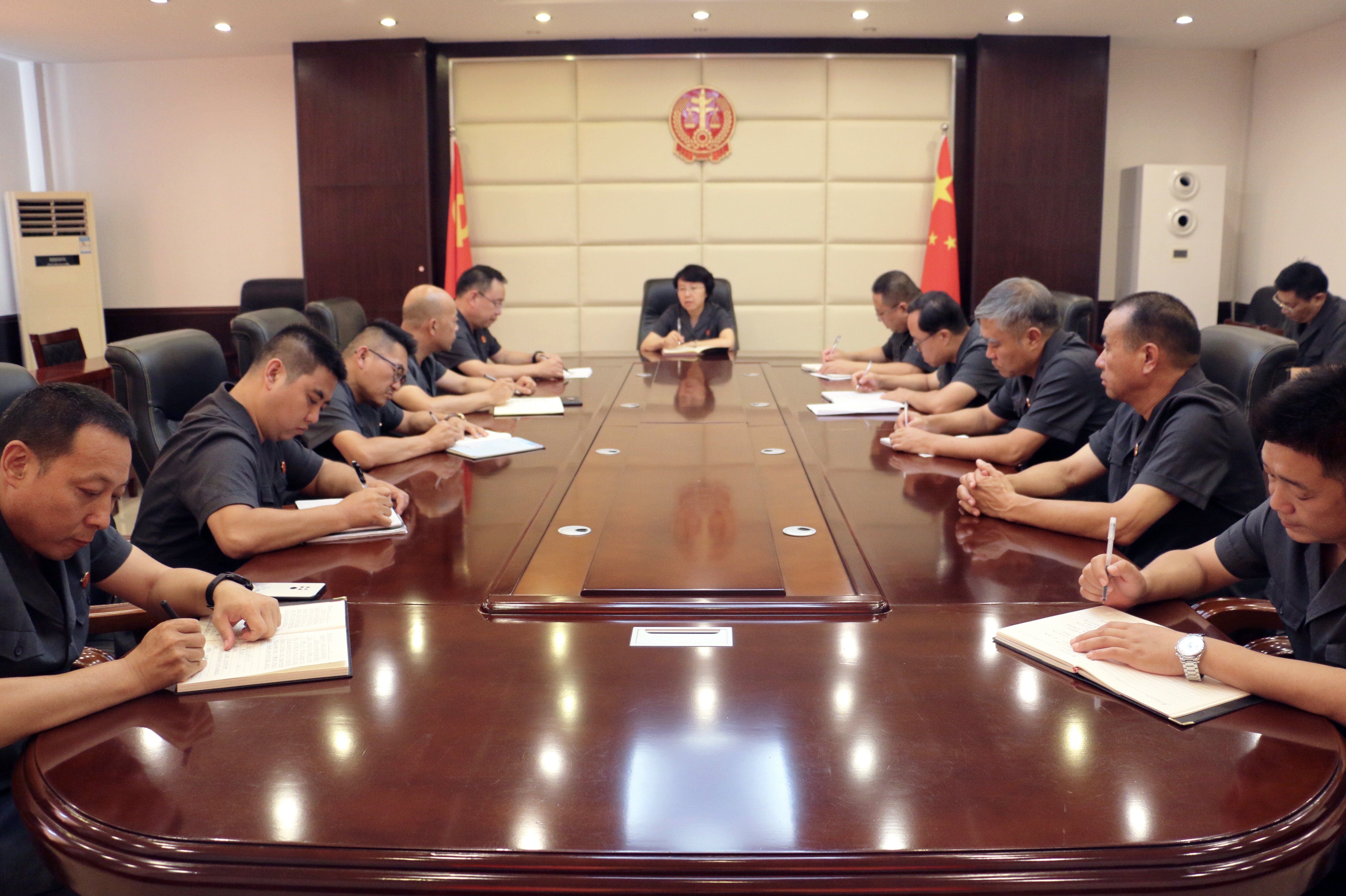 会上,任俊峰组长通报了五起违法违纪典型案例,以具体案例警示执行干警严守廉洁底线,不碰纪律红线。