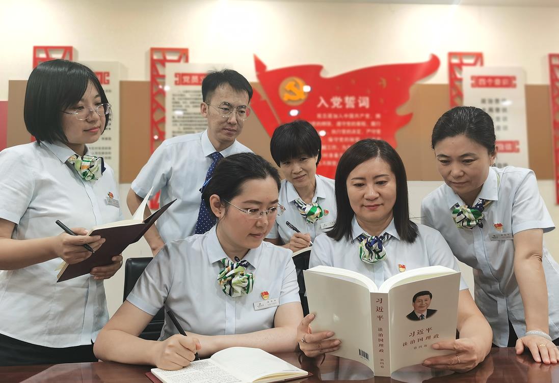 用党的事业凝聚人,铸造“一流团队”。永泰支行党支部持续加强干部队伍建设,把抓好党员学习作为首要任务和基础环节,广泛组织开展学习,让党员摆得进、学得好、议得深。一是靠制度保障“学”。把贯彻落实各项制度作为开展学习教育的“硬杠杠”,严格执行“三会一课”,定期组织集中学习,使组织学习成为党员政治学习的阵地、思想交流的平台、党性锻炼的熔炉。二是让党员带动“学”。通过党员带动群众学,学习党章党规、学习业务技能、学习规章制度,确保学习内容丰富、重点突出、常抓不懈。三是用实践检验“学”。把日常学习和业务拓展有机结合,做到学以致用,着力锻造一支政治强、业务精、作风硬的干部队伍。