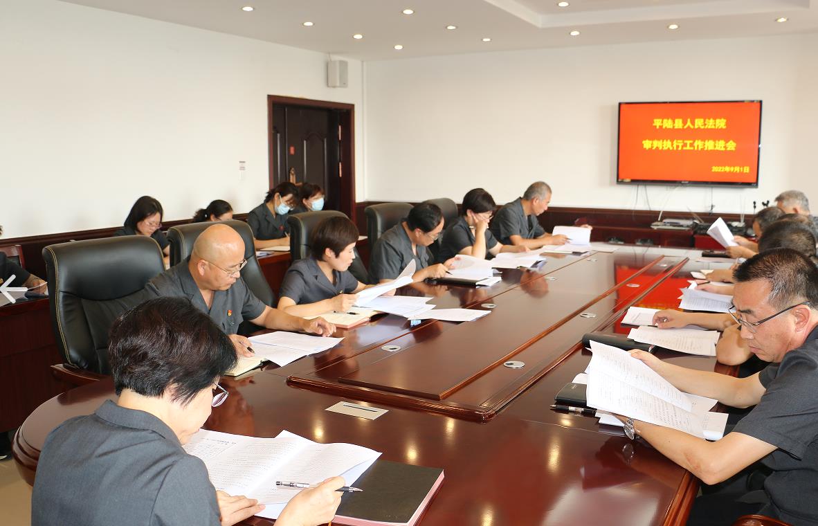 本网讯(通讯员 毛春芳)为精准把握审判执行工作态势,全面提升案件质效,9月1日下午,平陆法院召开审判执行工作推进会,总结回顾审判执行及营商环境工作开展情况,深入查找存在的问题和不足,安排部署下一阶段重点工作。党组书记、代院长程丽珍出席并讲话,全体员额法官参加会议。