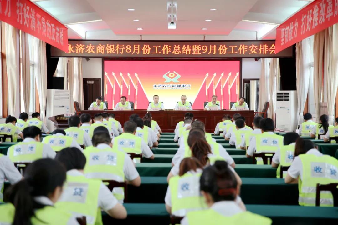 本网讯9月6日晚,永济农商银行在五楼会议室召开8月份工作总结暨9月份工作安排会。号召全员凝心聚力、乘势而上、全力以赴、攻坚克难,紧盯目标抓进度,倒排工作抓落实,加快推进“四大战役”“清不良”反击战、“千亿大行军”等重点工作,为完成全年各项任务目标打牢坚实基础。