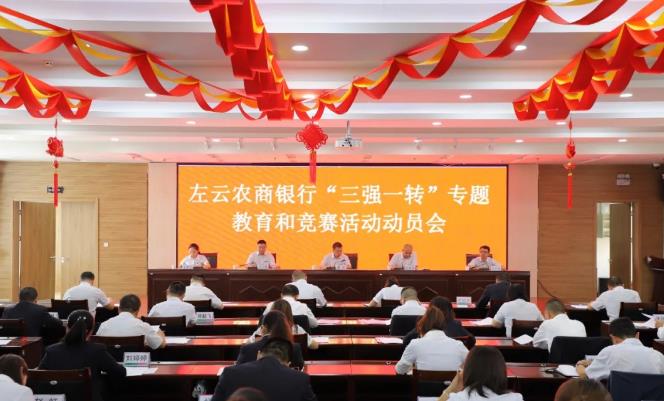 本网讯 (通讯员 田丰)为全面贯彻落实全省农村信用社党委(党组)书记会议精神,激发全行干部员工打好打赢“四大战役”的精神动力,凝聚和形成蹚出转型发展新路的强大合力。9月13日,左云农商行在总行三楼会议室召开“三强一转”动员部署会议,旨在全面推进“强理念、强技能、强服务、转作风”专题教育和竞赛活动在全行范围内迅速开展。总行全体班子成员、全行中层干部、党支部书记共计40余人参加此次会议。