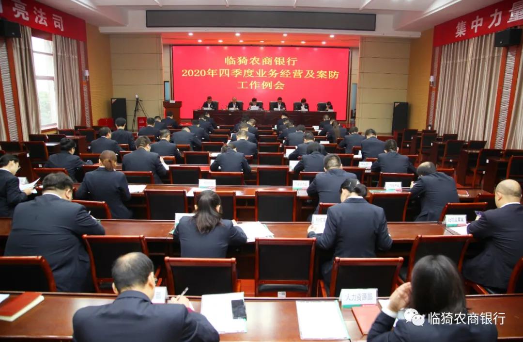会上,副行长侯丽萍对清不良反击战、百日行动、案防日志考核等分管工作进行通报安排,副行长董华通报了9月份基层网点组织资金、支农支小、大数据营销、资产质量、电子银行等业务开展情况。三季度主题竞赛活动排名靠后的庙上、耽子、东城等3家网点负责人和郇阳分理处负责人剖析发言。副行长赵晋轩宣读《2020年三季度业务经营奖惩兑现的通知》,副行长姚礼对安全保卫、信访维稳等工作进行强调安排。纪委书记、监事长王蕴华就分管的稽核、纪检工作进行安排强调。党委副书记、行长陈临生宣读并讲解《临猗农商银行“抢时间、抓进度,大干八十天、实现满堂红”业务竞赛活动方案》,明确全行四季度工作的指导思想、任务目标、奖惩考核及具体路径。