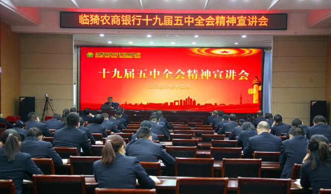 本网讯(王文福)为深刻领会党的十九届五中全会精神实质和丰富内涵,推动学习贯彻活动深入扎实开展,12月2日下午,临猗农商银行在东三楼会议室开展党的十九届五中全会精神专题宣讲。此次宣讲邀请运城市委党校张智勇老师做专题宣讲报告,总行党委班子成员、全体中层干部、机关党员共计100余人参加活动。