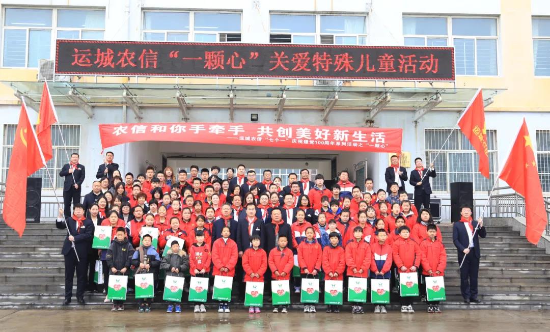 本网讯(张志刚)“农信和你手牵手 共创美好新生活”。3月11日上午,在春雨蒙蒙中,运城市联社机关人员集体来到运城市特殊教育学校看望这里的一百余名少年儿童,为他们送去字帖、拼图和生活用品,和他们共升国旗,共唱国歌,共同分享爱的温暖,共同奏响爱的旋律,共同感受爱的力量。