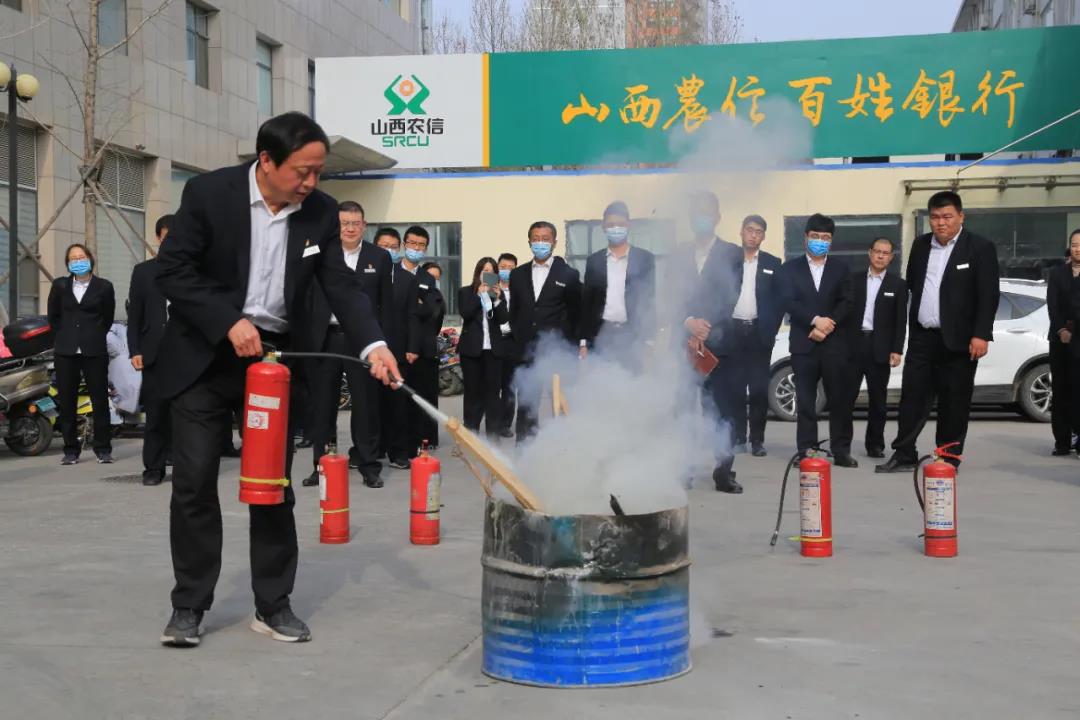 培训中,与会人员集体学习了运城信合大厦的消防设施、消防通道及火灾处置、应急逃生知识,并开展了实地逃生演练和灭火演练。