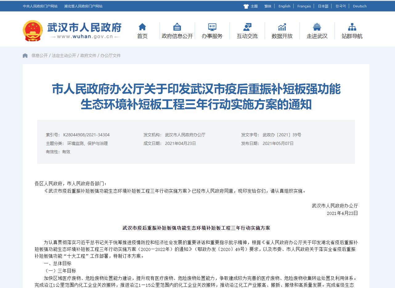 武汉市疫后重振补短板强功能生态环境补短板工程三年行动实施方案