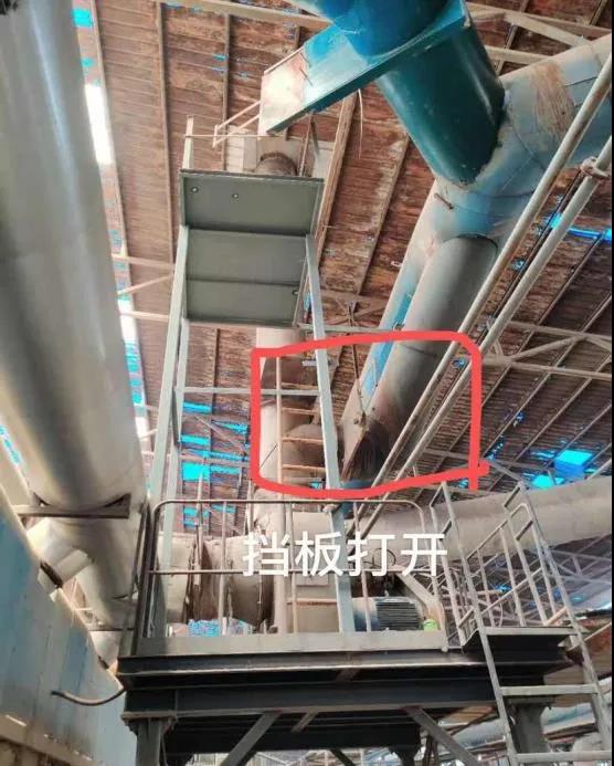 沈阳大唐陶瓷有限公司辊道窑烟气收集管道旁路挡板处于开启状态。