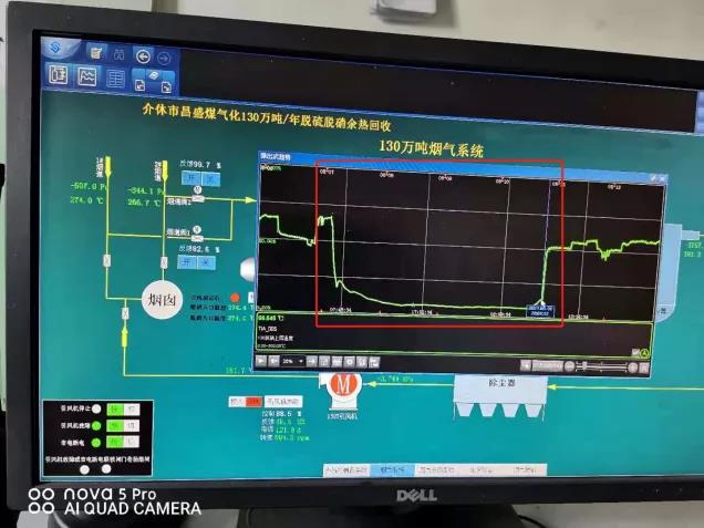 5月7日起,介休市昌盛煤气化有限公司1号焦炉废气阀门关闭(左);5月7日至10日,烟气脱硝设施温度明显下降(右)。