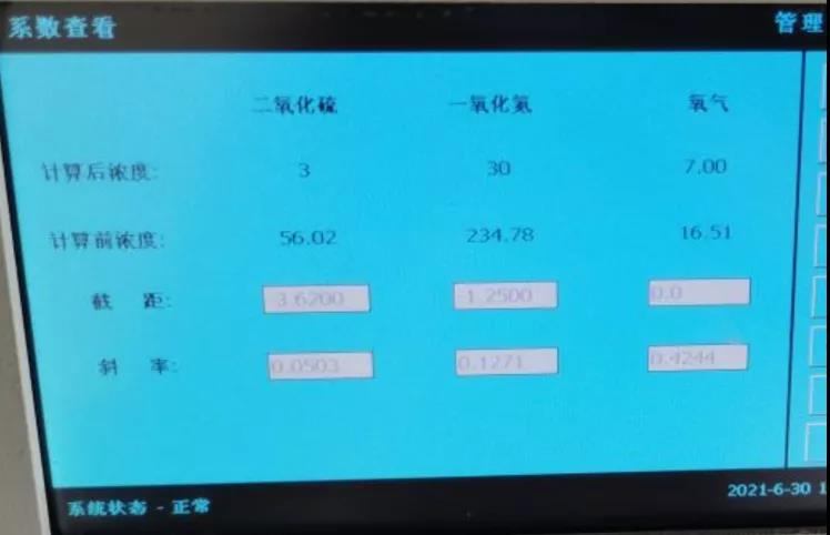检查发现,徐州天安化工有限公司擅自篡改自动监测设备中二氧化硫、一氧化氮的斜率函数,致使两者的测量值大幅减小,分别只有真实值的5%和12%。现场使用标气进行测试,通入浓度206mg/m3的二氧化硫标准气体和浓度206mg/m3的一氧化氮标准气体,分析仪测量数值分别仅为9mg/m3和26mg/m3,数据严重失真。