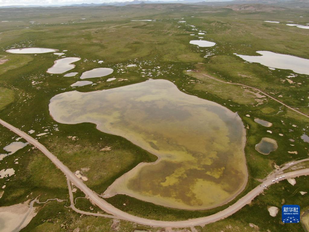这是7月23日拍摄的长江源地区的查旦湿地(无人机照片)。新华社记者 张龙 摄