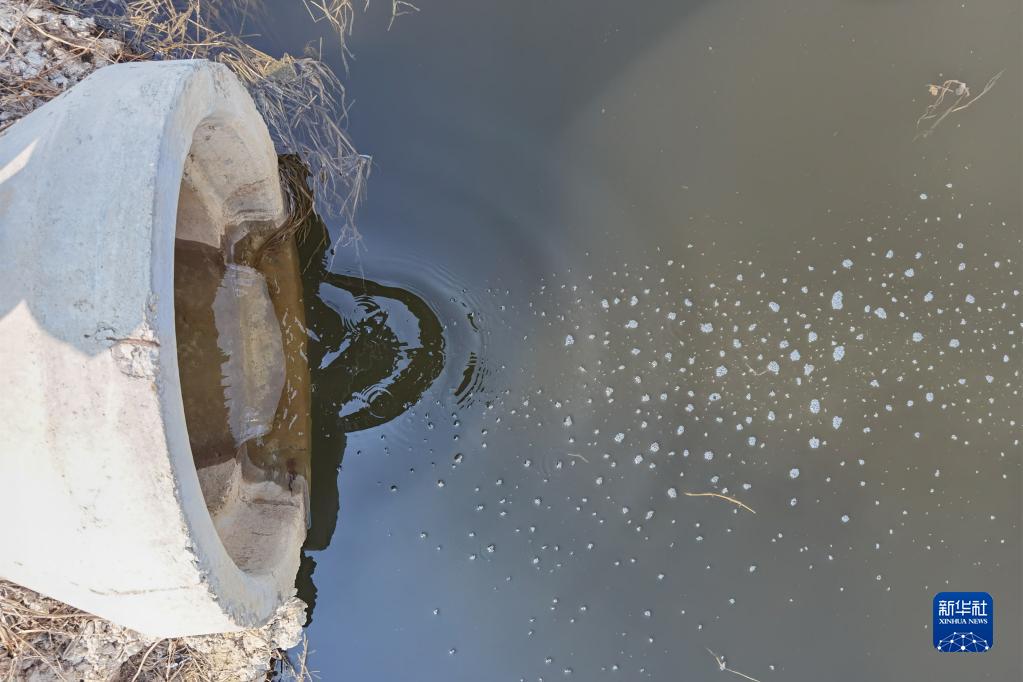 化工园区高浓度化工废水长期直排,郑庄大桥北侧溢流口正在溢流(3月9日摄)。新华社发(中央第二生态环境保护督察组供图)