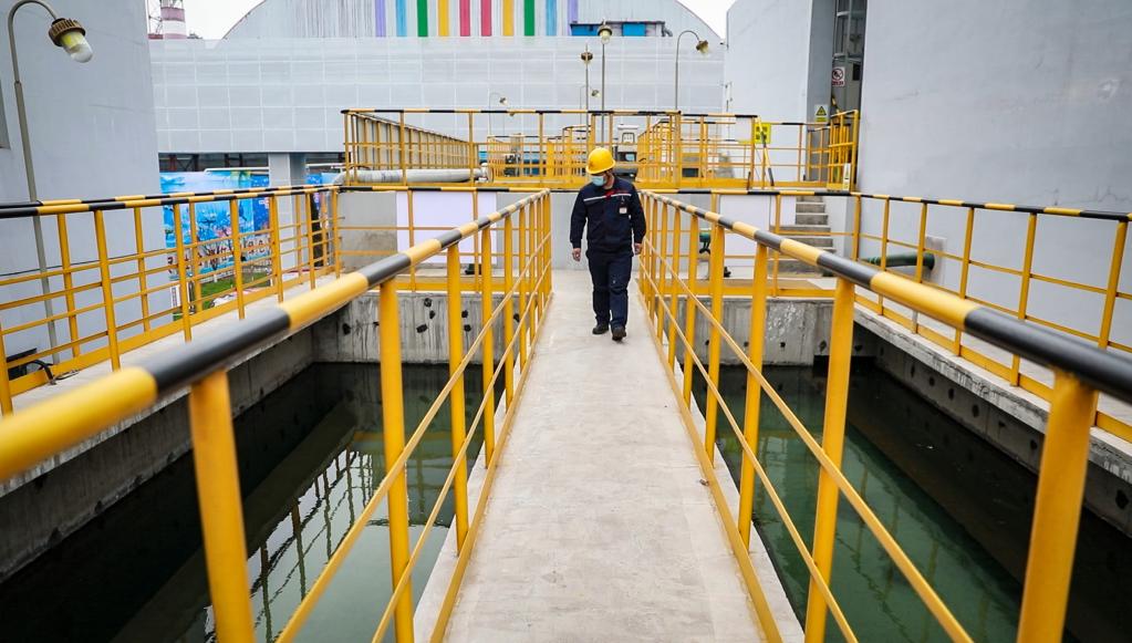 3月19日,工人在德龙钢铁公司水处理中心巡查。这里的生产废水和生活污水经处理后可循环使用,实现污废水“零排放”。(陈雷摄)