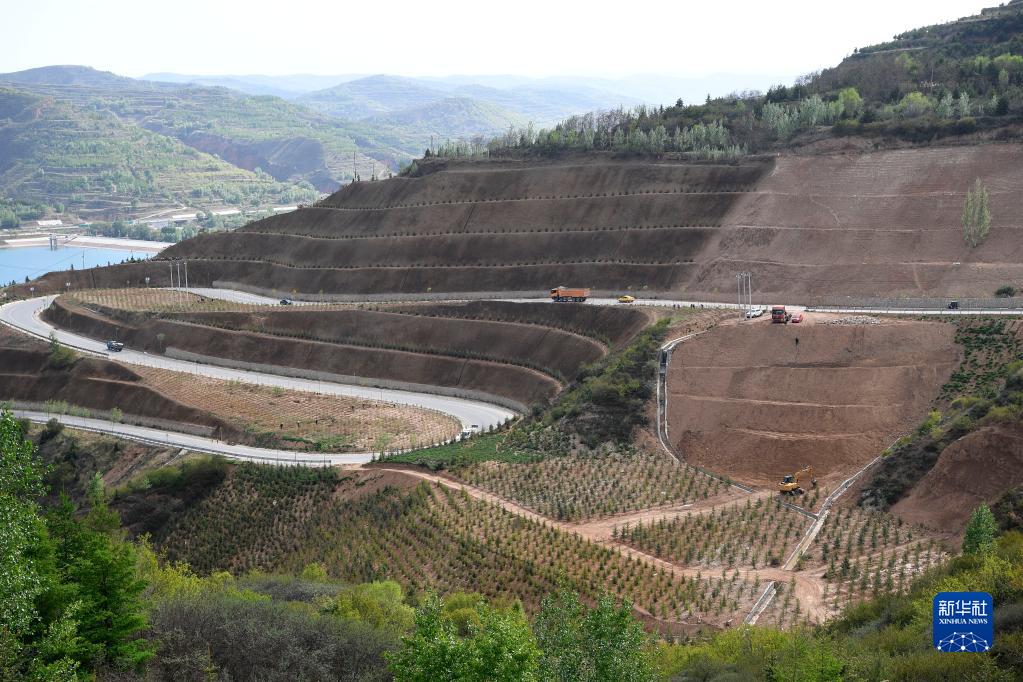 宁夏固原隆德县北象山历史遗留废弃矿山修复工程(5月11日摄,无人机照片)。新华社记者 王鹏 摄