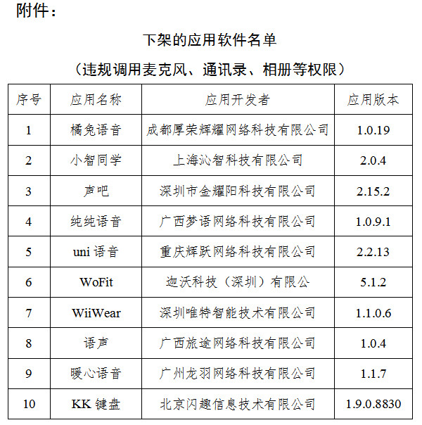 通报显示,截至目前,经第三方检测机构核查复检,尚有10款APP未按照工业和信息化部要求完成整改(详见附件)。