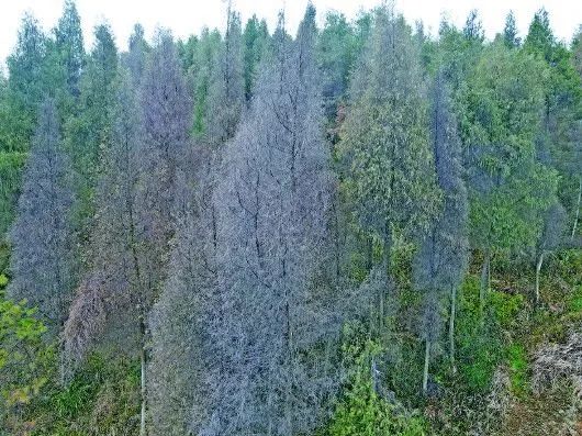 台江县革一镇后哨村周边的一片枇杷树已经干枯死亡。