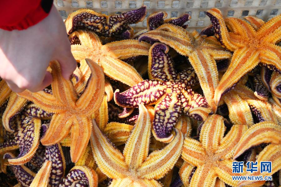 这是3月14日拍摄的刚捕捞上岸的海星。新华社记者 李紫恒 摄
