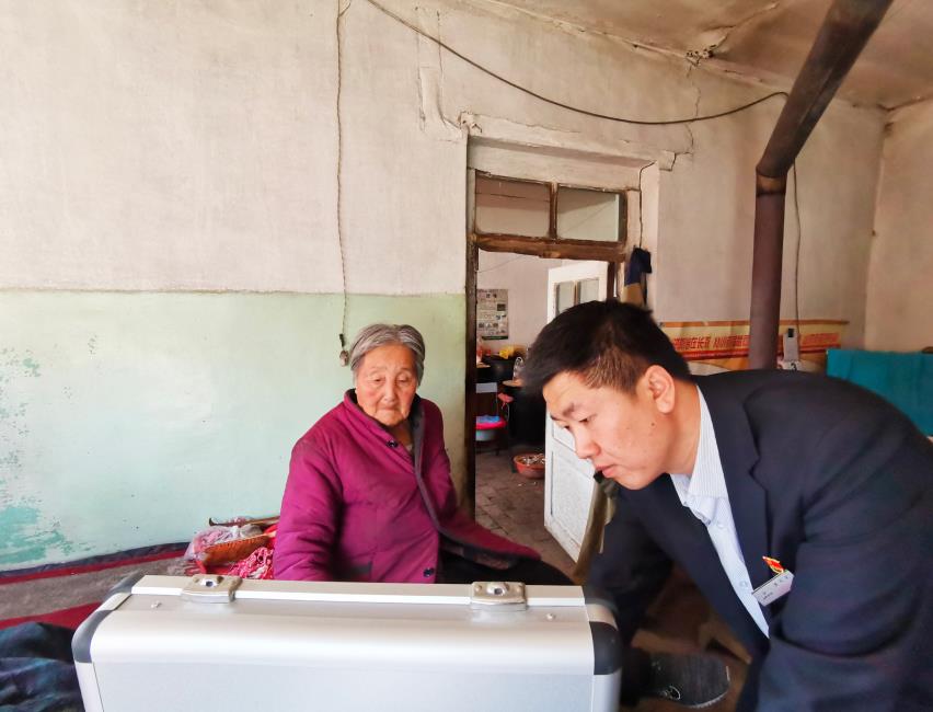 经过主任方晓霞的安抚协调,得知刘先生的老母亲马奶奶今年已经92岁高龄,截至今年已经18年没出过家门,走动最远的距离就是厢房的门口。而近来,由于国家下发了90岁以上老人可领取特殊高龄补贴的好政策,前提是需要一张银行储蓄卡,于是刘先生便跑了4家银行代理其母亲办理,结果全都碰了一鼻子灰,在朋友的介绍下他才来到了南关信用社。
