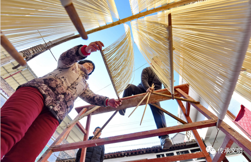 在夏县裴介镇有个叫鲁因的古老村庄,这里土地广袤,物产丰富,民勤俗良,生活殷实,古时,人称“天府之村”。在这里,有一项传统手工空心挂面的制作技艺,代代相传了600余年,素有“晋南手工挂面第一村”之称。本期传承,让我们跟随鲁因空心挂面制作技艺的第27 代传承人张合家,一起品味鲁因挂面让人垂涎的手工味道。