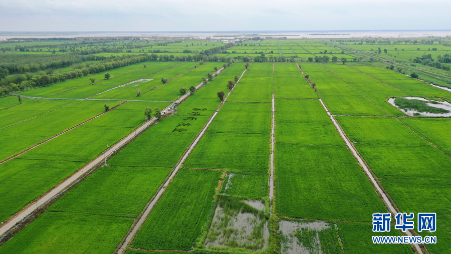 7月下旬,镇赉县一处水稻基地内,水稻长势良好(新华网记者 孙冰洁 摄)