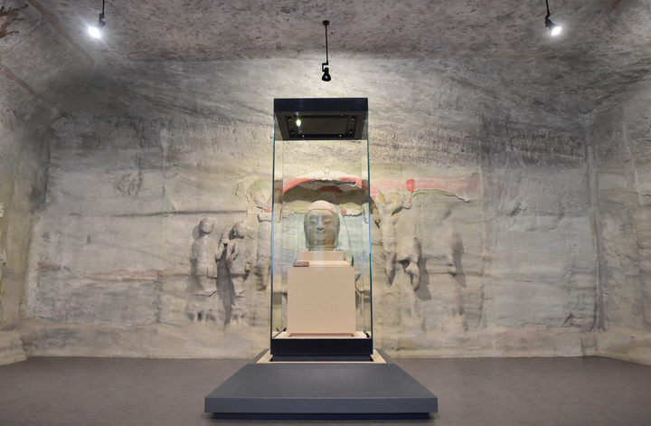 这是7月24日在太原市天龙山石窟博物馆拍摄的天龙山石窟“第8窟北壁主尊佛首”。新华社记者 柴婷 摄