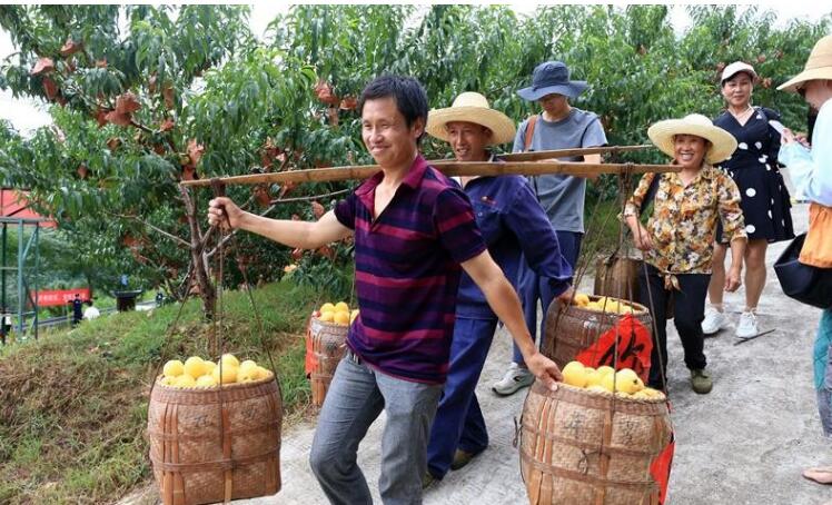 7月24日,江西省吉安市永丰县上溪乡礼坊畲族村农民在采收成熟的黄桃。近年来,永丰县上溪乡结合流域生态综合治理,着力发展水土保持生态黄桃产业,采取“党支部+合作社+品牌+基地+农户”一体化经营模式,坚持举办黄桃文化旅游节,打造农旅融合综合体,助推乡村振兴和共同富裕。