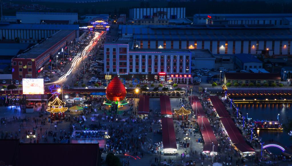 前杜村草莓主题游乐园的夜景。(前杜村村委会供图)