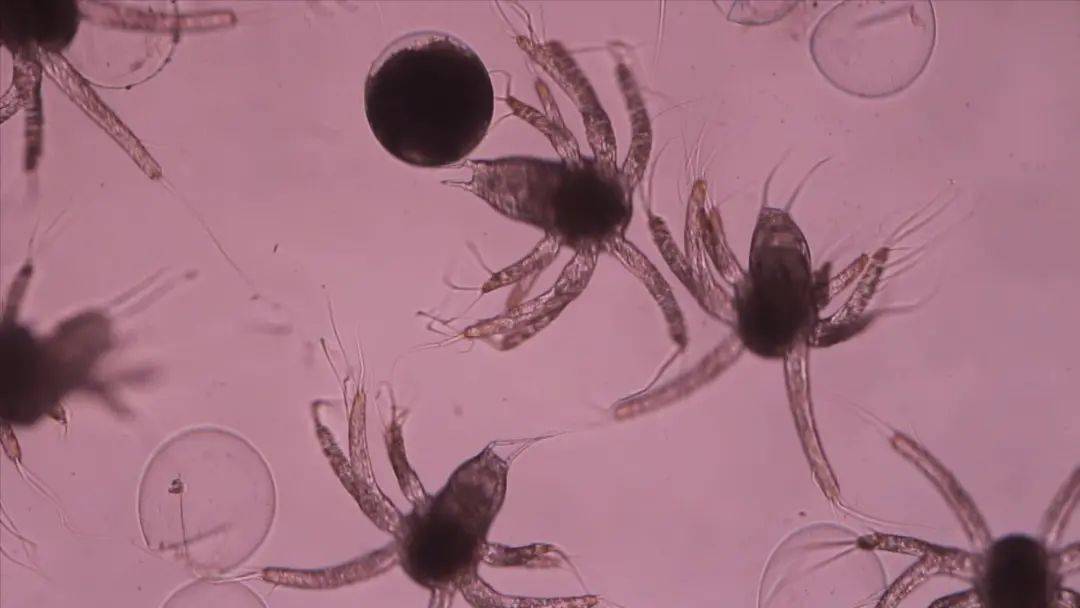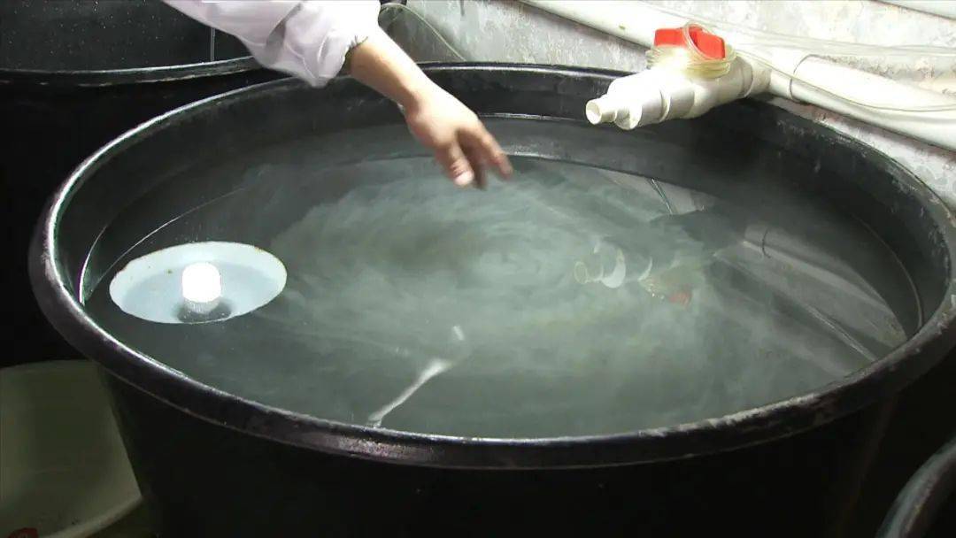 白色的无节幼体在黑色的大木桶里,它们有很强的趋光性,在光照下,会随着水流奋力“奔跑”这是一个自然淘汰的过程。强壮无节幼体都在上面游动,一些病弱无节幼体就沉在水里。或许表面看不出差异,在显微镜下放大200倍后,它们有的细胞壁已经被破坏,无法再继续生长;有的是畸形的无节幼体,尾棘要么很短,要么呈“内八”状。这些都达不到许圣钰做虾苗的要求会被淘汰“出局”。